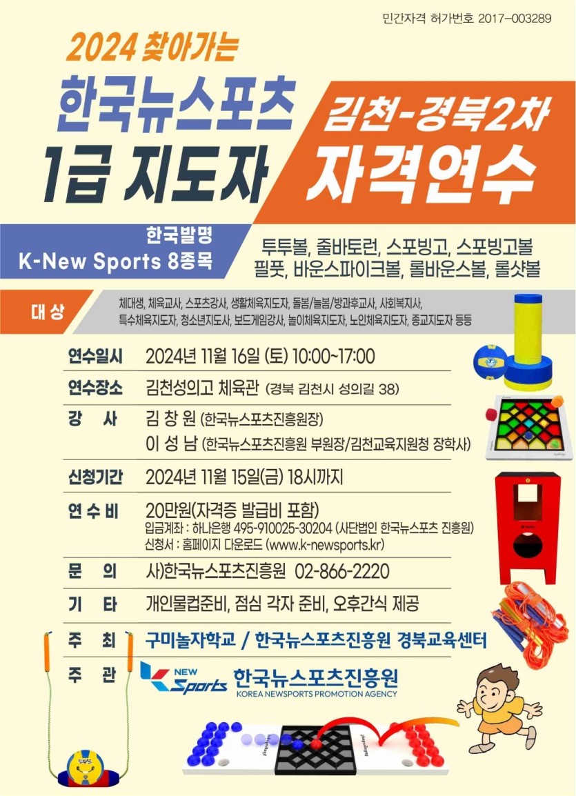 2024 찾아가는 한국뉴스포츠 1급 지도자 자격연수 안내(김천)