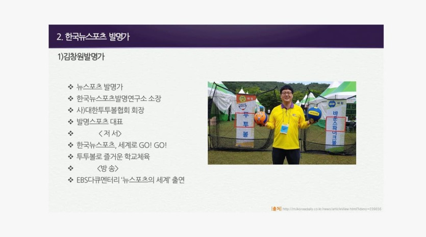 강사: 김창원 한국뉴스포츠발명연구소장, (사)대한투투볼협회장
