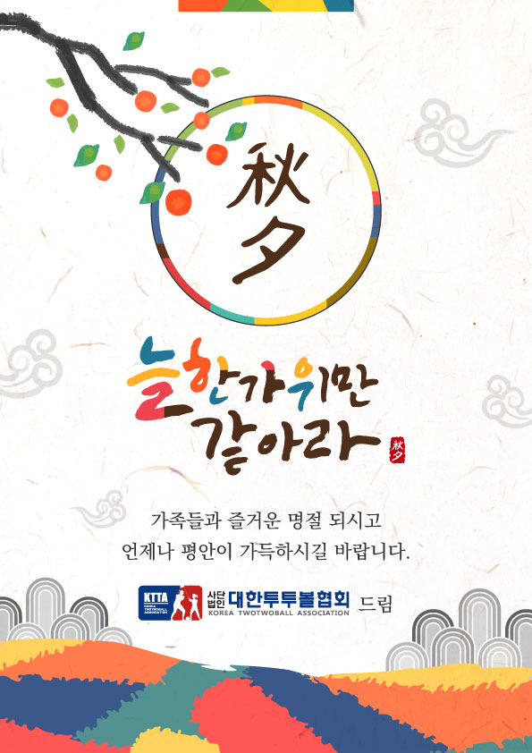 즐겁고 행복한 추석명절 되세요~!^^ 페이지 정보 작성자 관리자 작성일 19-09-12 13:13 조회 1,247회 댓글 0건 본문 행복한 추석명절 되세요! 이전글나누어서 행복한 제2회 성남ymca 전국투투볼대회 베스트 타격모음 다음글(사)대한투투볼협회 꿈빛나래청소년문화의집 간 업무협약체결 목록