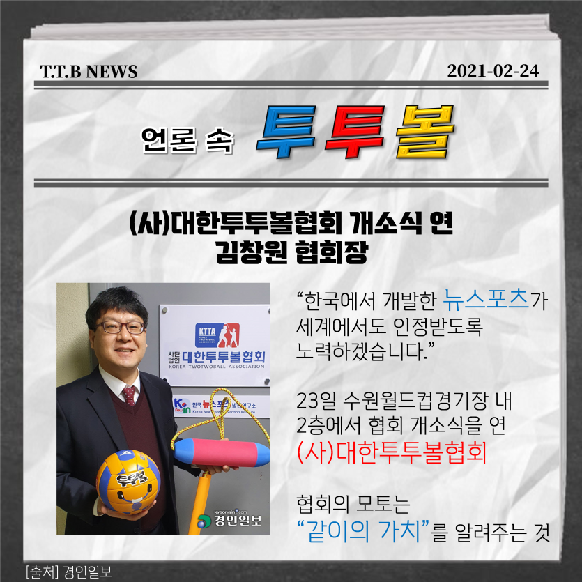 #한국뉴스포츠 #투투볼 #대한투투볼협회 #언론속투투볼 #언론보도 #학교체육 #생활체육 #한류스포츠 #전세계로Go