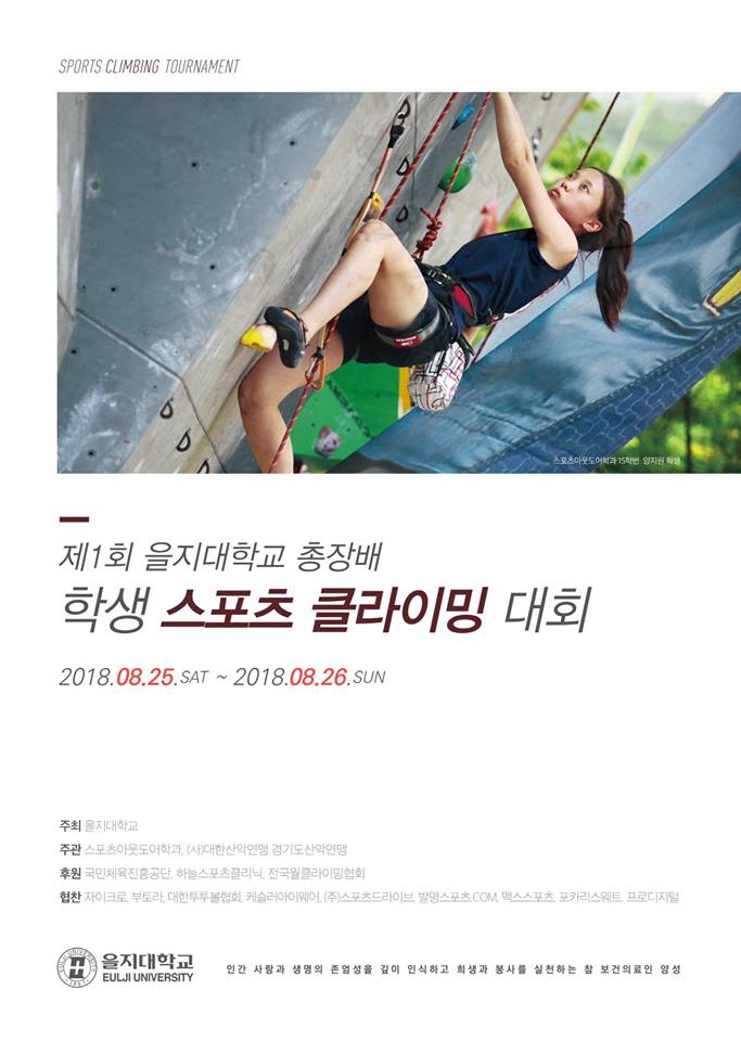 오는 8월 25~26일 진행되는 '제1회 을지대학교 총장배 학생 스포츠클라이밍대회'에