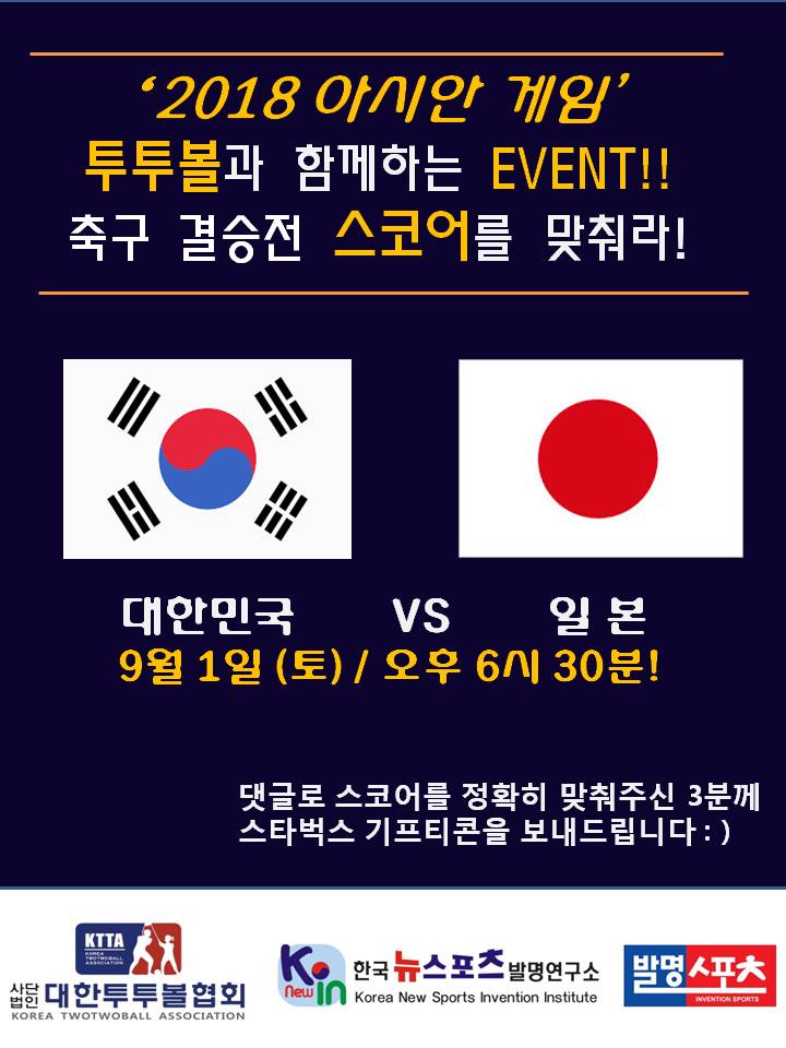 투투볼과 함께하는 2018 아시안게임 축구결승 스코어 이벤트!!