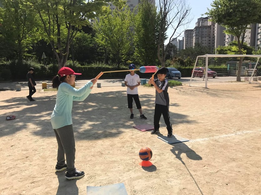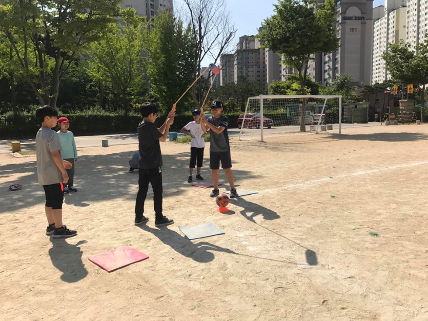 처음해보는 뉴스포츠에 모두들 신기방기?! 마음 맞춰 타격하며~ 어느새 얼굴에 즐거움이 가득했네용~~