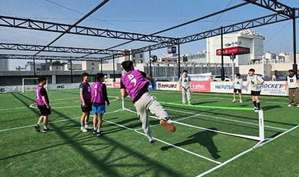 쉴 틈 없이 움직이며 바운스된 공을 잡고, 스파이크하는 배구형 뉴스포츠다