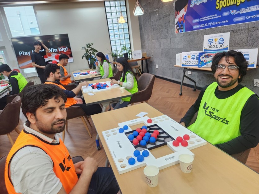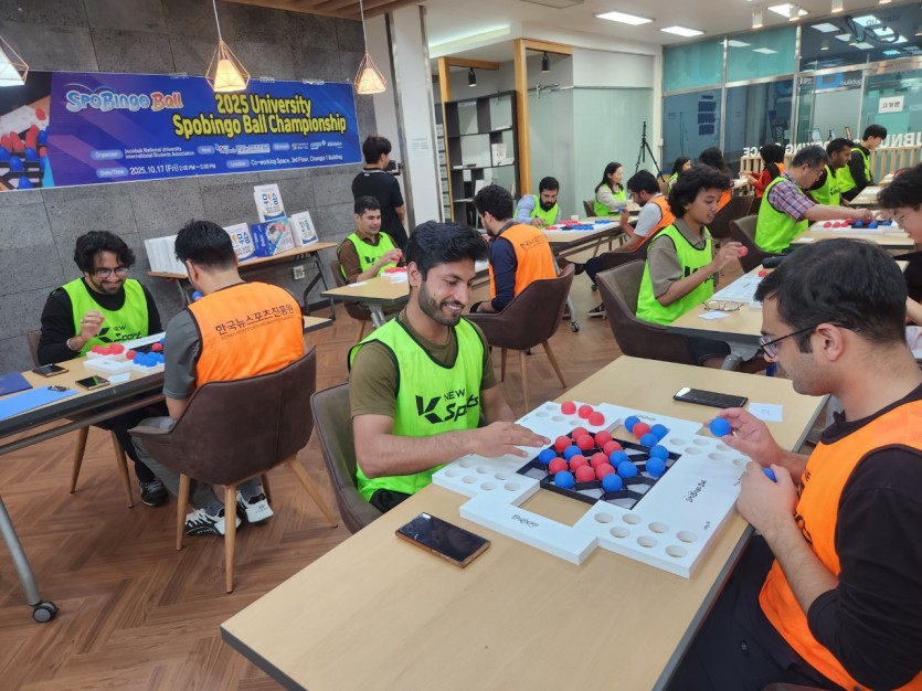 2025년 10월 17일(금), (사)한국뉴스포츠진흥원이 전북대학교 전주캠퍼스에서 개최한 대학 스포빙고볼 챔피언십 대회! 이번 대회에는 인도네시아, 파키스탄, 인도, 너팔, 몽골 등 다양한 국적의 유학생들이 참가해 그야말로 다문화 축제의 장이 되었습니다:) 처음엔 낯설던 K-뉴스포츠 ‘스포빙고볼’이었지만, 몇 번 연습하고 규칙을 익히자, 모두가 눈을 반짝이며 경쟁의 즐거움에 빠져들었죠.